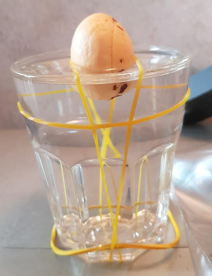 - [물 많이 시간 많이] 아보카도 씨는 2주에서 한달정도 물에 반쯤 잠기게 두고 기다려야 한다. 보통 씨앗에 이쑤시개를 박아놓고 물 채운 컵에 올려두는데 소중한 씨앗친구에게 그런 짓을 할 수가 없어서 왼쪽 사진같은 이상한 짓을 하다가 (고무줄이 미끄러워서 많이 떨굼. 아보카도가 차라리 이쑤시개 박아달라고 했을 것 같다 ㅋㅋ)