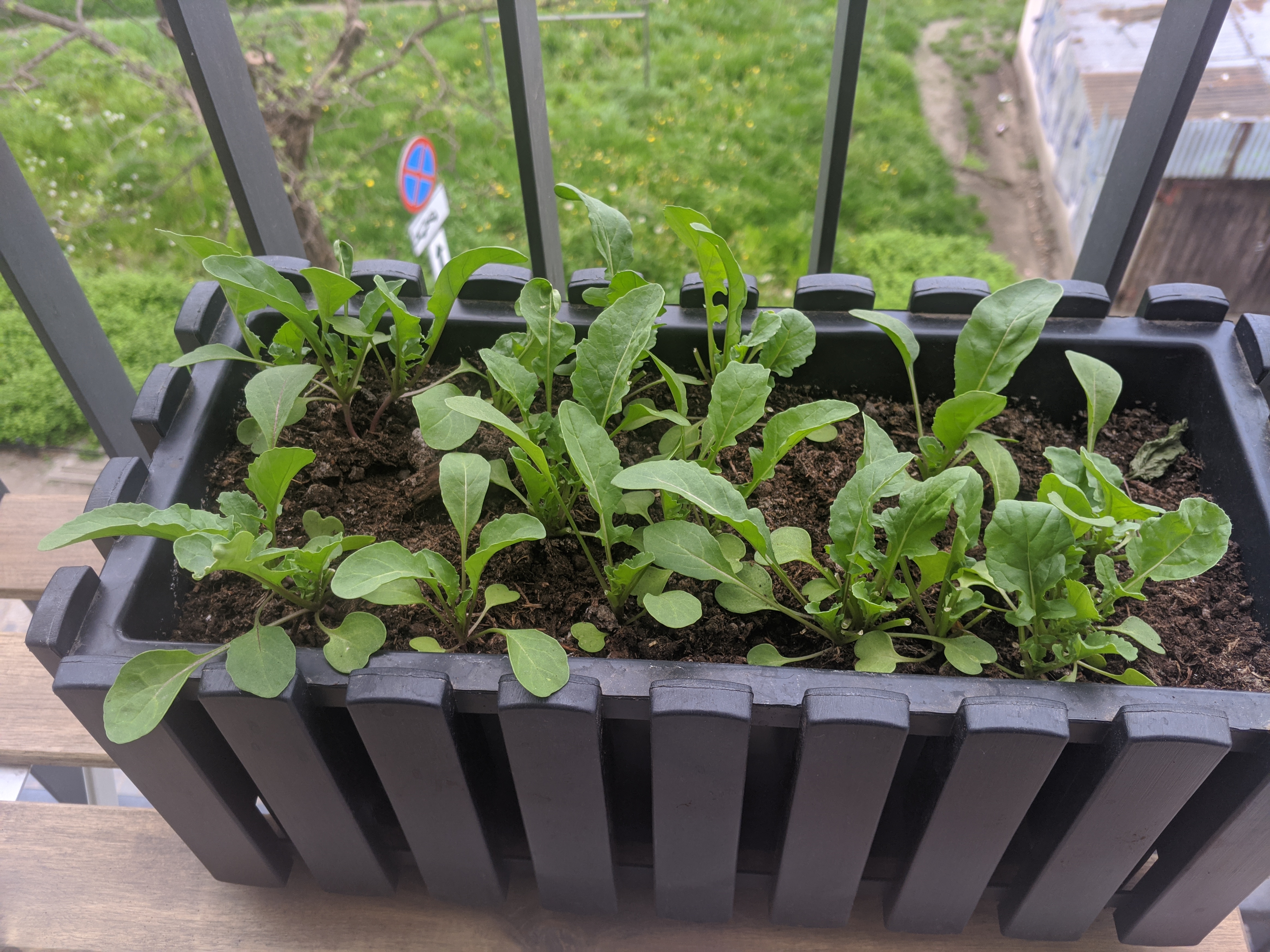 루꼴라는 진짜 많이 자랐다. 몇번 뜯어먹었는데도 금방 다시 새 잎이 돋는다. 완전 든든하다.ㅋㅋ